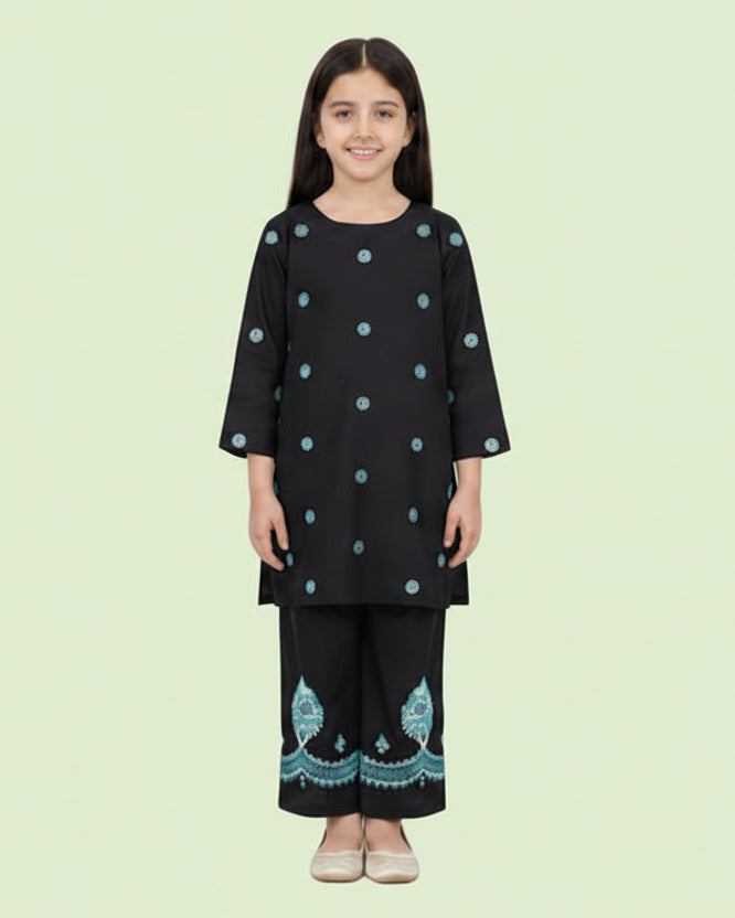 Sophisticated Black & Blue Floral Embroidered Kurta Trouser Set