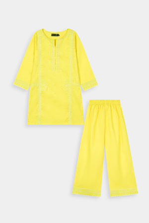 Bright Yellow Embroidered Kurta & Trouser Set