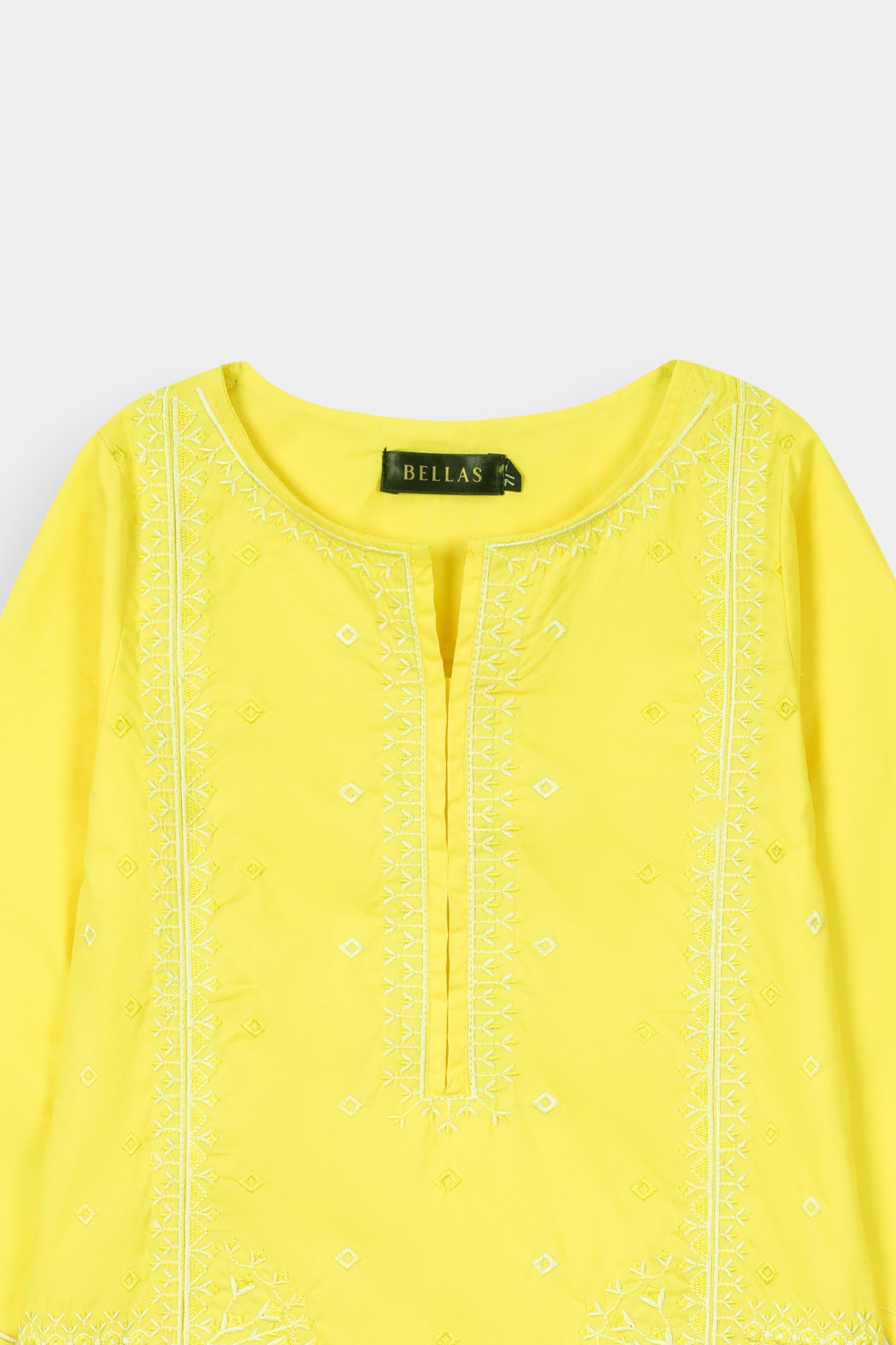 Color Harmony: The bright yellow base beautifully highlights the crisp white embroidery, creating a harmonious and appealing look.