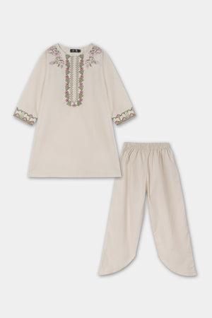 Chic Beige Multi-Color Embroidered Kurta & Tulip Trouser Set