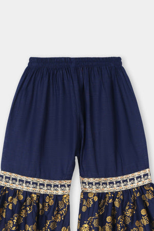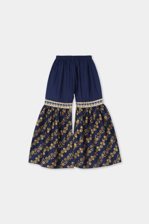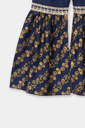 Festive Navy Blue Printed & Embroidered Kurta & Gharara Set