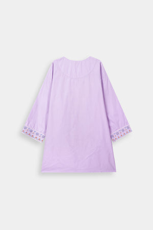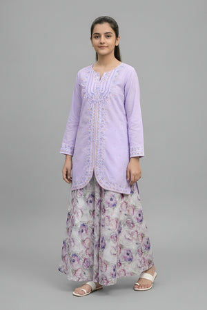 Pastel Lilac Embroidered Kurta & Watercolor Floral Skirt Set