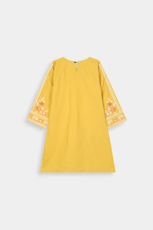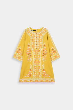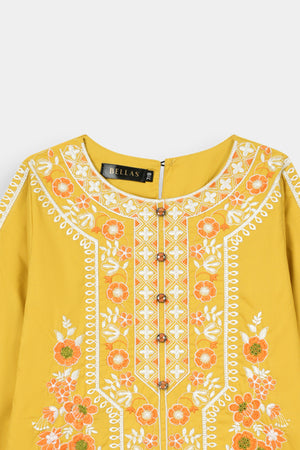 Vibrant Mustard Embroidered Kurta & Floral Printed Trouser Set